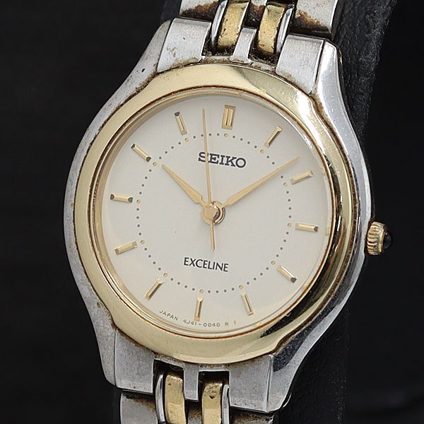 > 稼動 セイコー QZ エクセリーヌ 4J41-0030 イエロー文字盤 ラウンド コンビカラー レディース腕時計 2000000 NSK OMI