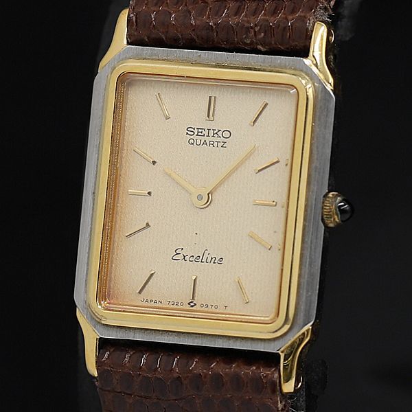 - 稼働 良品 セイコー QZ エクセリーヌ 7320-6020 ベージュ文字盤 レクタンギュラー レディース腕時計 TCY2000000 NSK