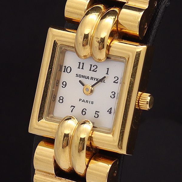 - ソニアリキエル QZ ホワイトシェル文字盤 スクエア レディース腕時計 NKG