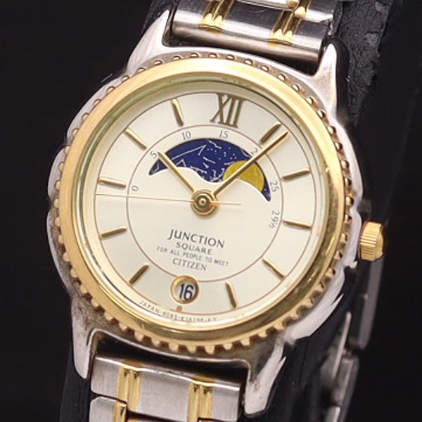 - シチズン QZ 6085-KO4913 ジャンクション ムーンフェイズ デイト ゴールド文字盤 レディース腕時計 YSD