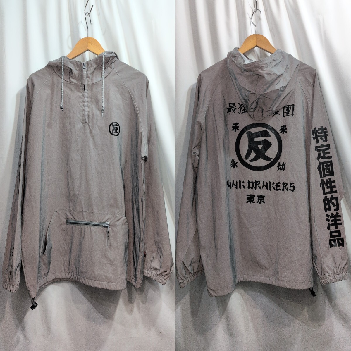> PUNK DRUNKERS パンクドランカーズ 反リフレクターアノラックパーカ L メンズ バッカブル プルオーバー グレー くっきー
