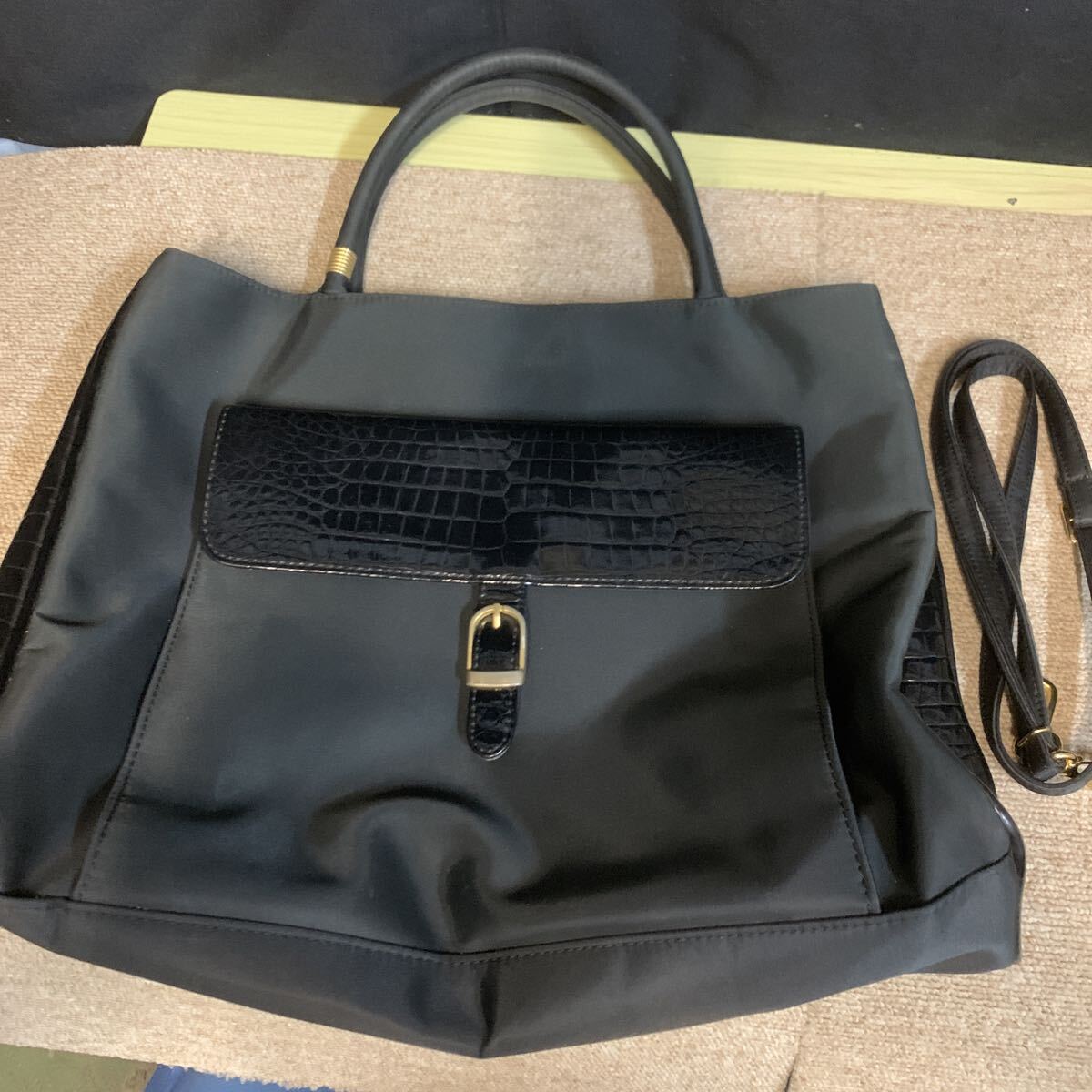 - 【E463R】POLA クロコ型+ナイロン 女性用2wayトートバッグ 幅30㎝×高さ30㎝×奥行10㎝