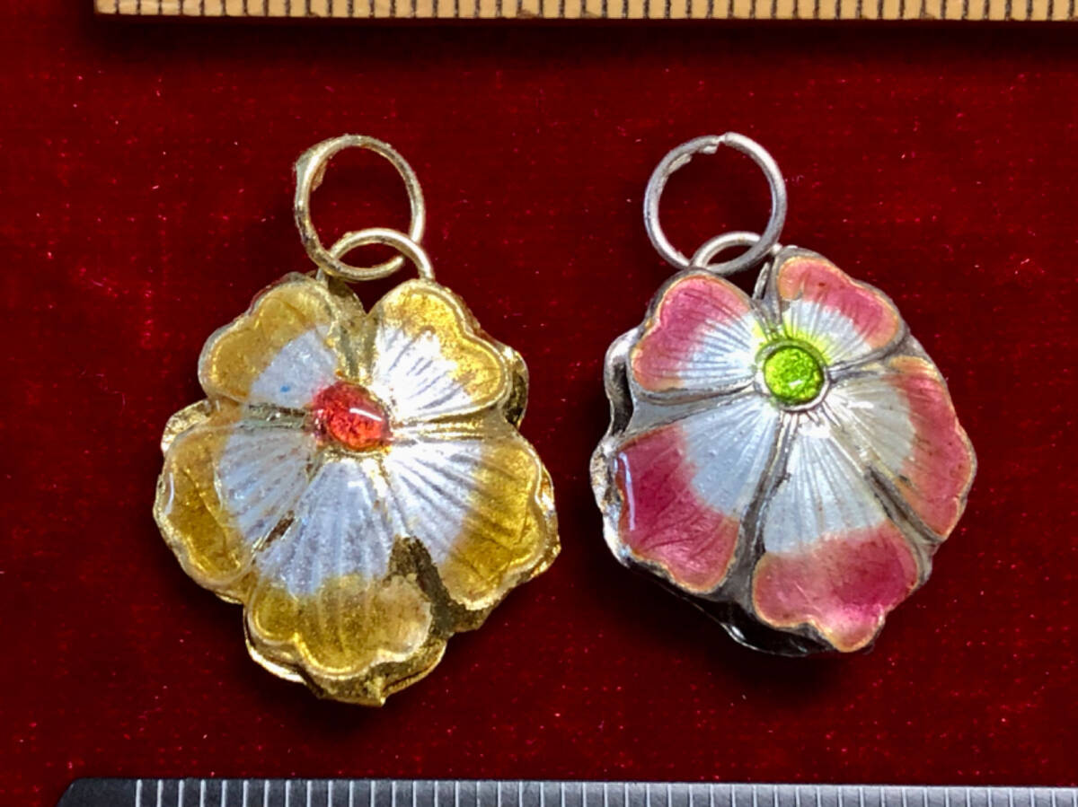 > ¶!¶ 有線七宝焼ワールド - 2色(個)の五弁花型ペンダントb ¶!¶ 約厚6㎜×18㎜×20㎜ 金線二色釉 手作 手芸 工芸 インテリア ペンダント