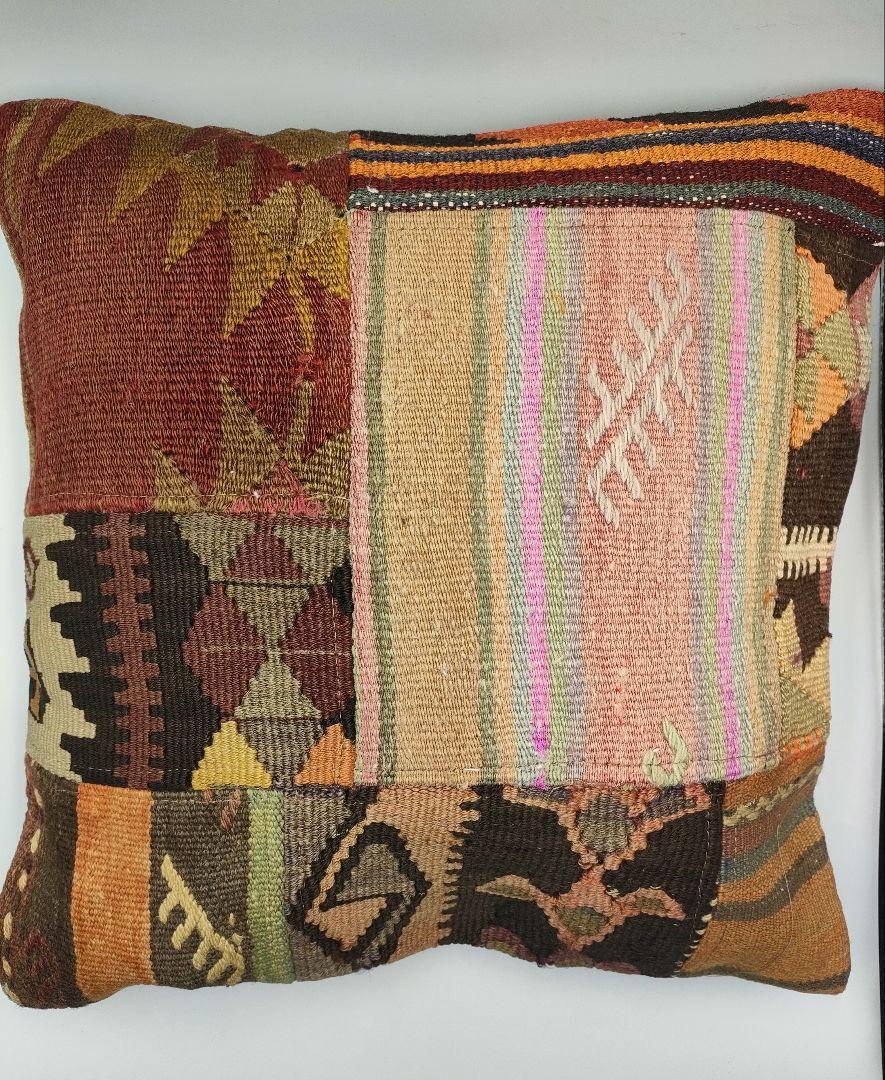 - L10-17 トルコ パッチワーク オールドキリム クッションカバー 大きめ 50cm
