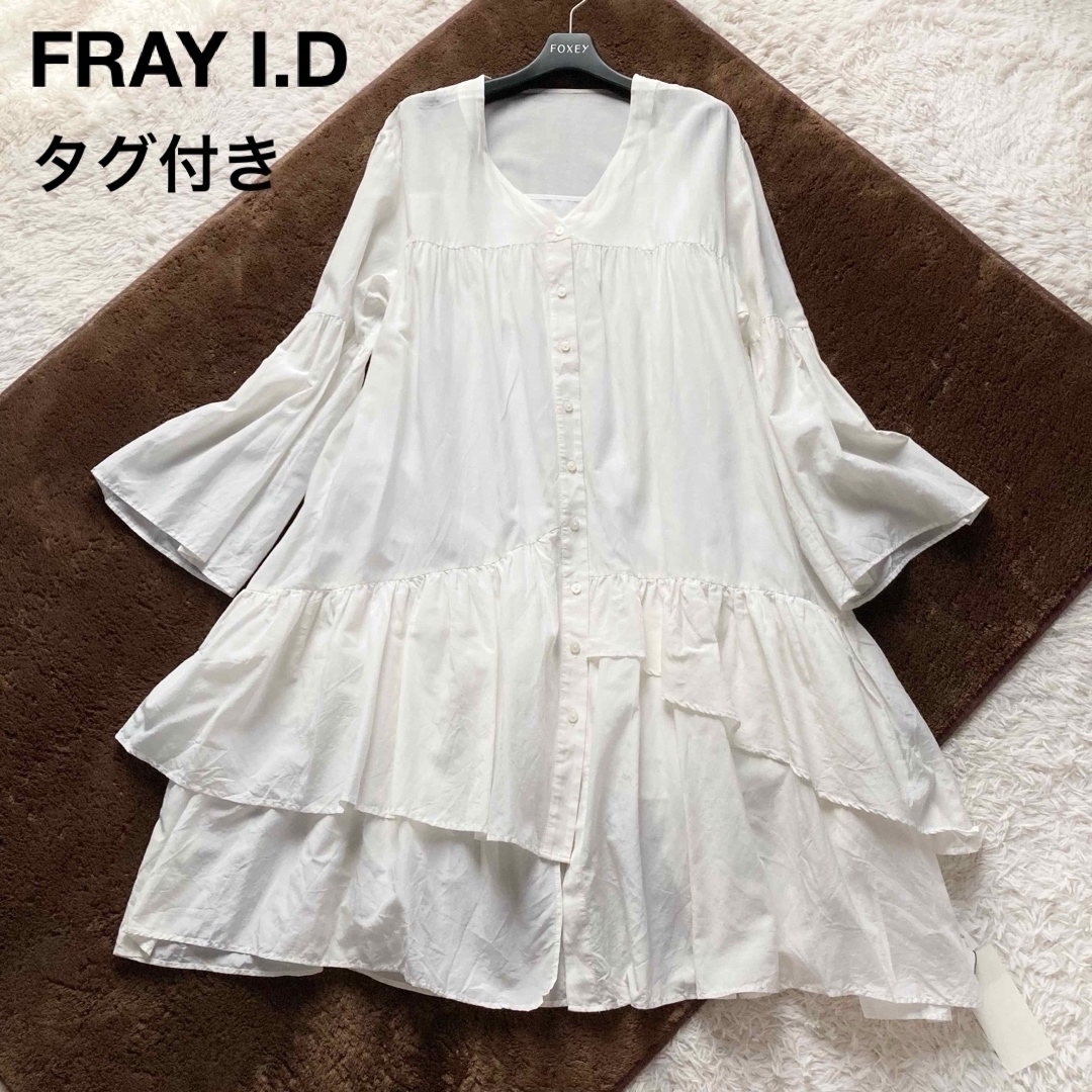 - タグ付き!FRAY I.D ティアードフリルシャツワンピース アシンメトリー 白 ホワイト フリーサイズ フレイアイディー