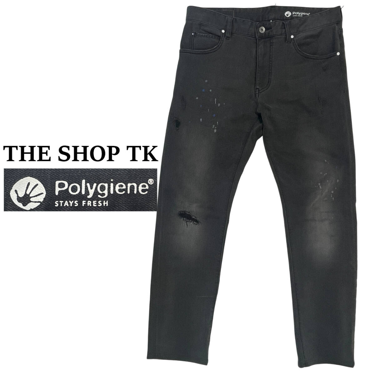 > THE SHOP TK 9813 デニムパンツ size.M (約82cm W32相当)TAKEO KIKUCHI Polygiene ダメージ リペア加工 ペイント ストレッチ ジーンズ