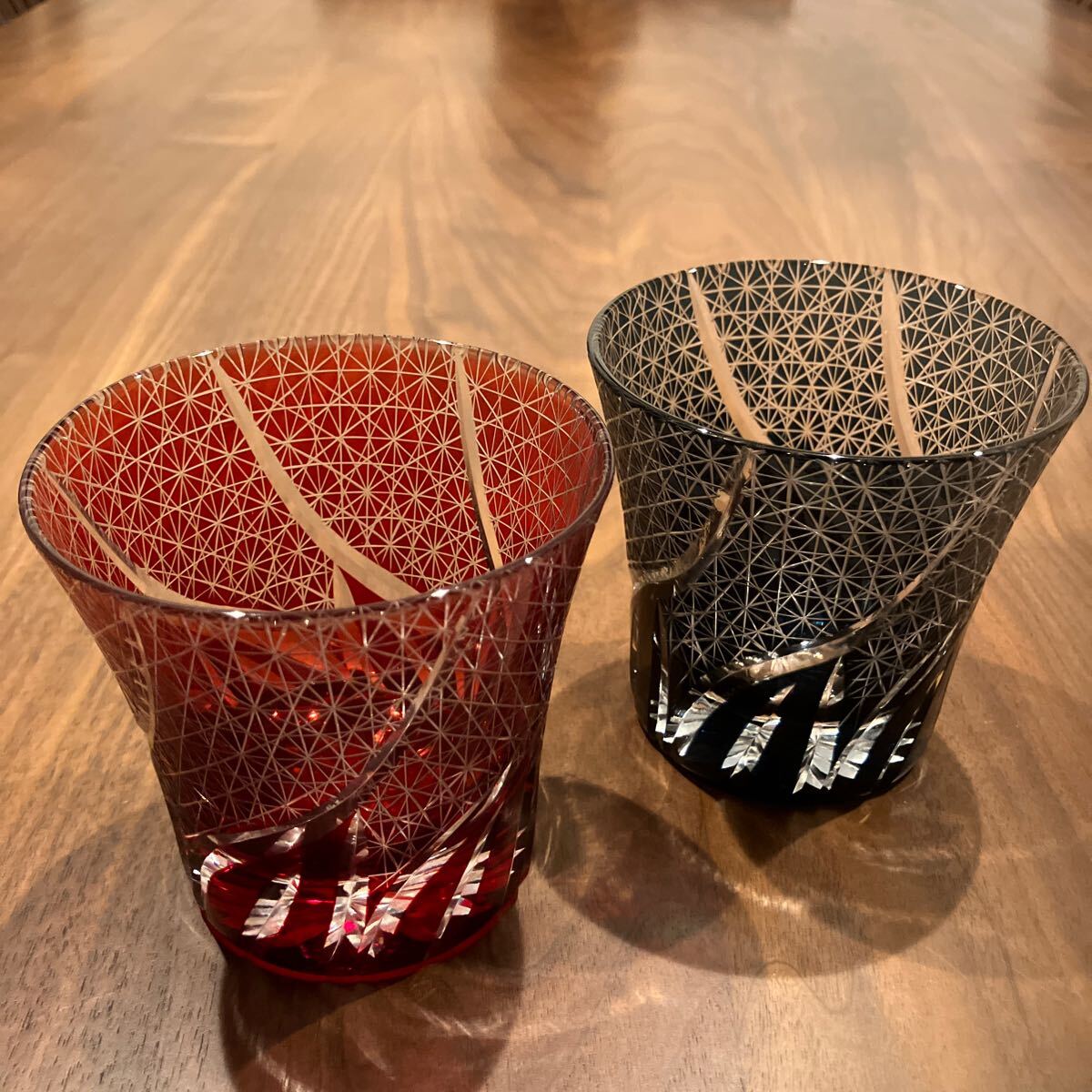 - 江戸切子 切子 ロックグラス 赤色 紺色 セット 和風 鮮やか キレイ 工芸品 グラス 綺麗 日本 コレクション JAPAN