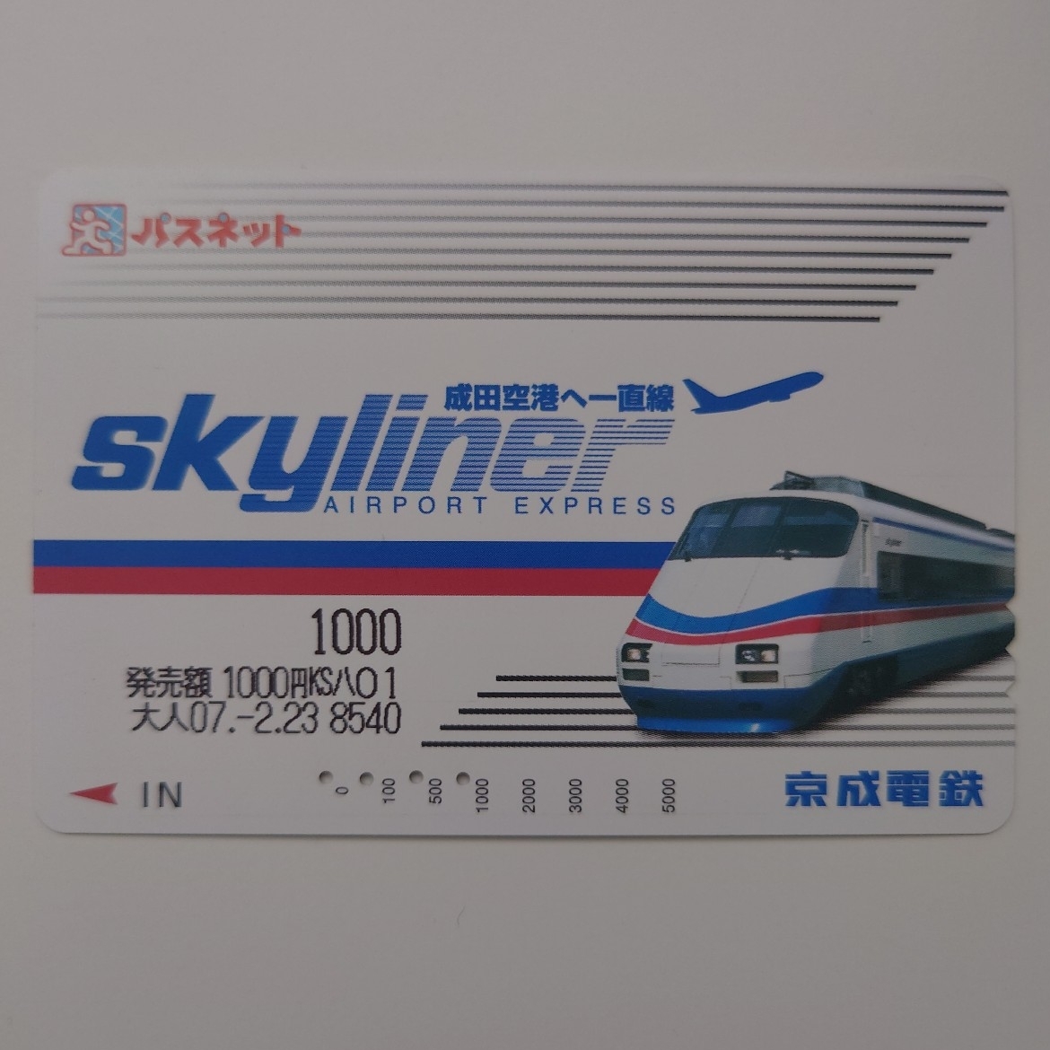 - 【使用済】パスネット 成田空港へ一直線 スカイライナー 1000円券 京成電鉄