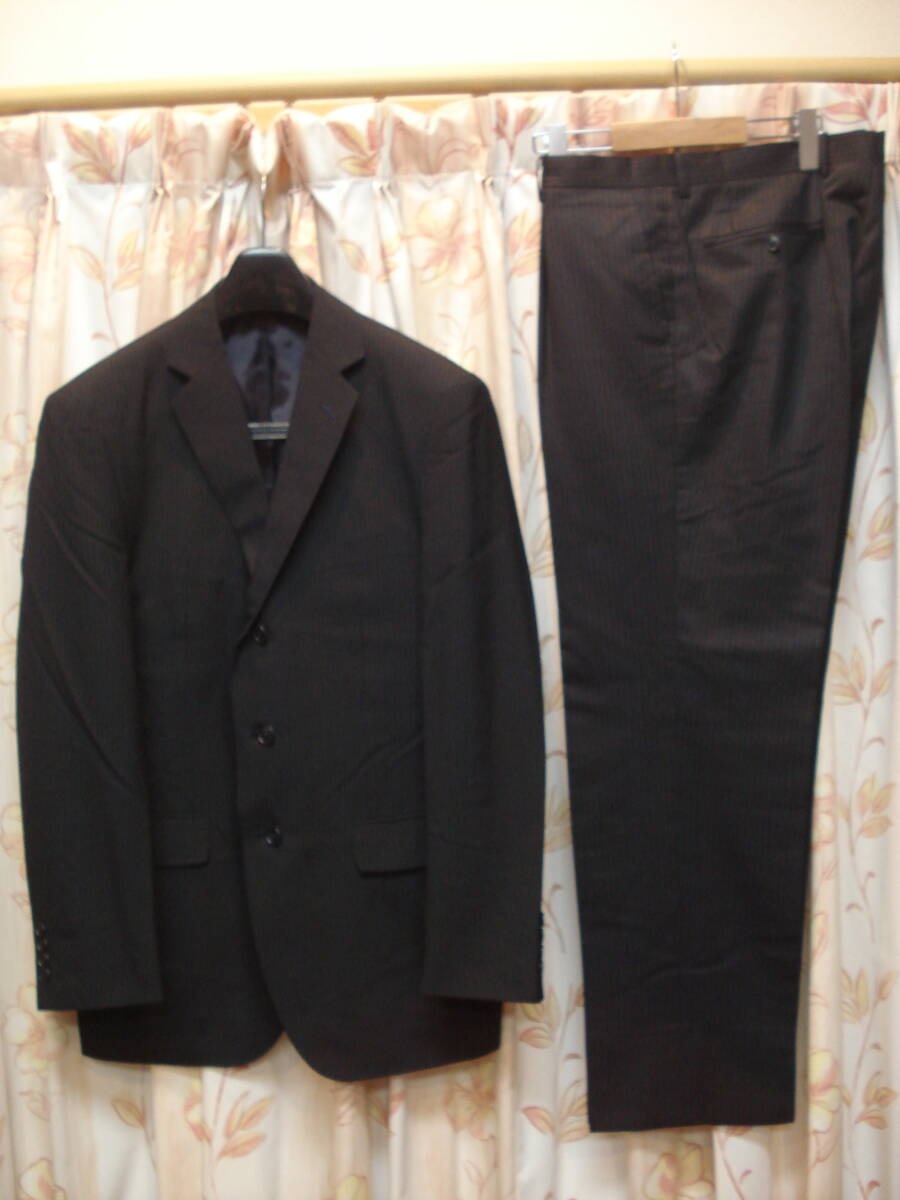 - 送料無料!美品! ★ 秋・冬もの!AB6サイズ!ウェスト:90cm!黒色薄いストライプ柄入り!定番シングルスーツ! ★