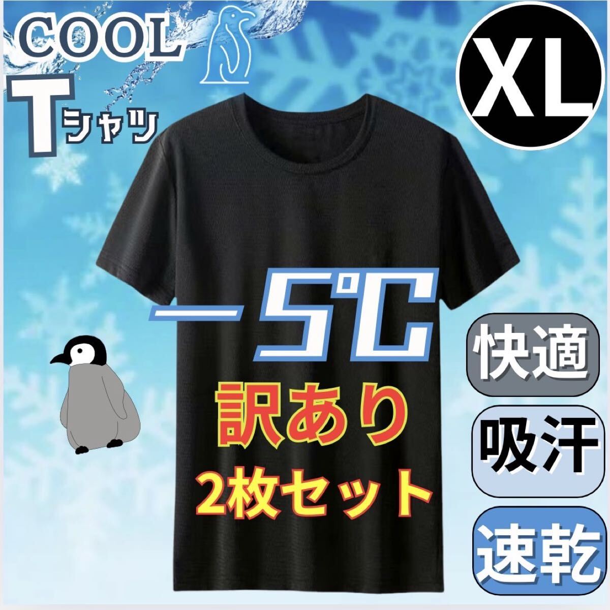 - XL Tシャツ 黒 接触冷感 ブラック カットソー トップス 半袖 ドライ 熱中症対策 無地 丸首 大きめサイズ メンズ スポーツインナー
