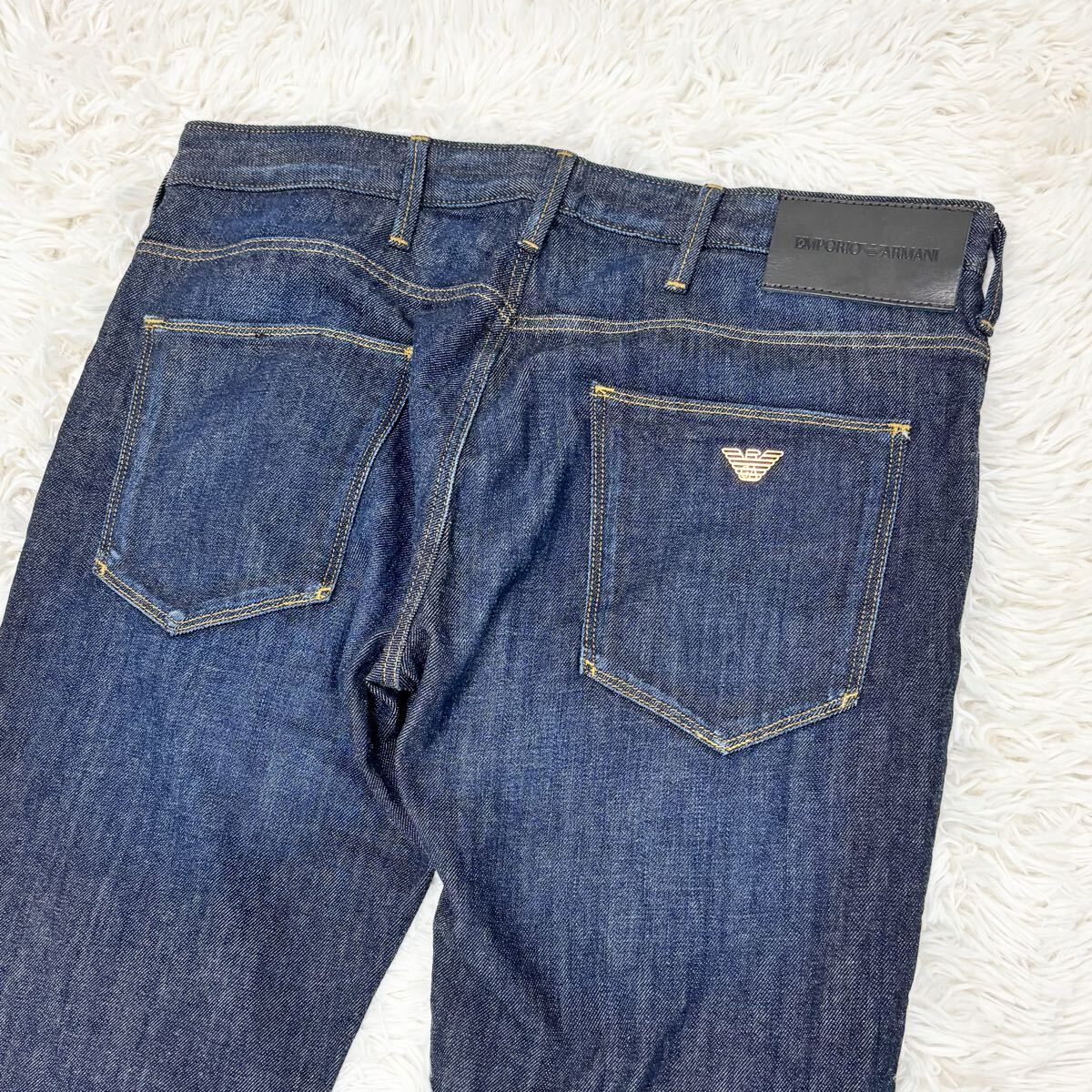 - 美品!XL相当! W32 EMPORIO ARMANI エンポリオアルマーニ イーグルロゴ インディゴ ジーンズ デニム ストレッチ ブルー ネイビー ロゴ金具
