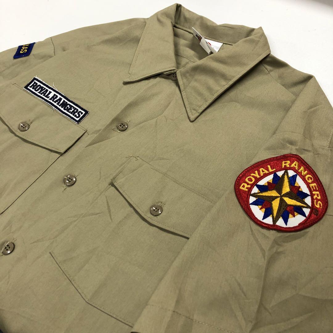 - Dickies ワークシャツ ワッペン付き ベージュ USA製 メンズXL