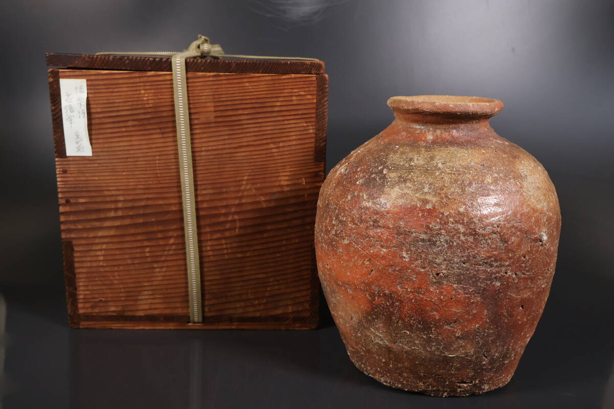 - 【和】(A3438) 時代古作 桃山江戸 古信楽壺 うずくまる 保管箱有