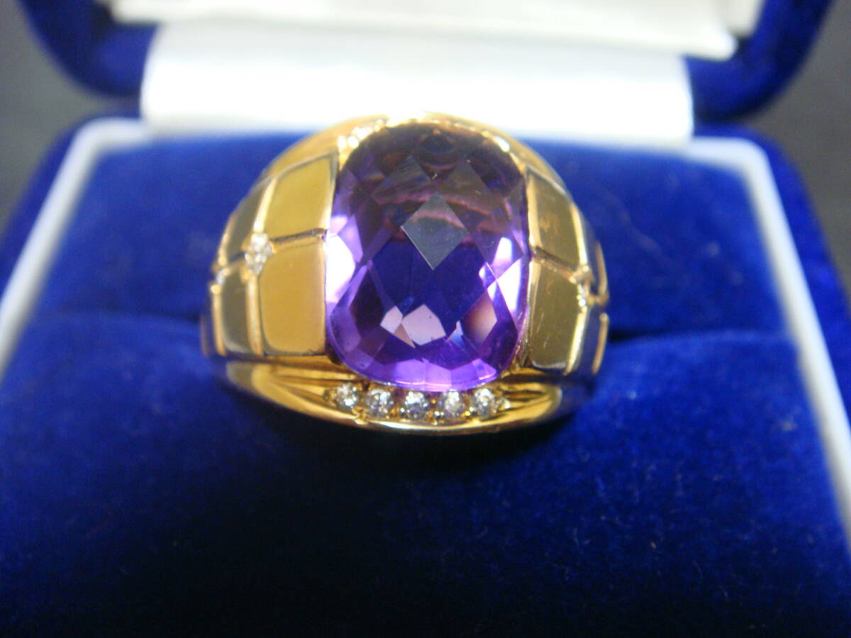- ◆アメシスト リング 14金 585刻印 サイズ約21 鑑別書付き◆
