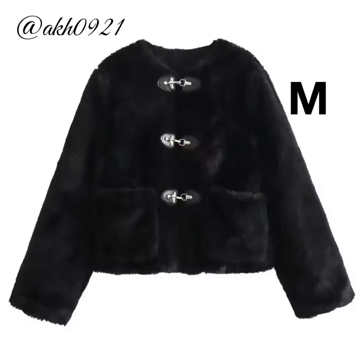 - 新品未使用★2025 秋新作★vintage ヴィンテージ レトロ black ボア ファー ダッフルコート アウター Mサイズ レディース★ZARA 好きな方に