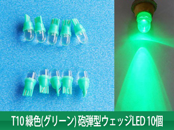 - 【特】激安! T10/T16 砲弾型 ウェッジLED 緑 グリーン 10個