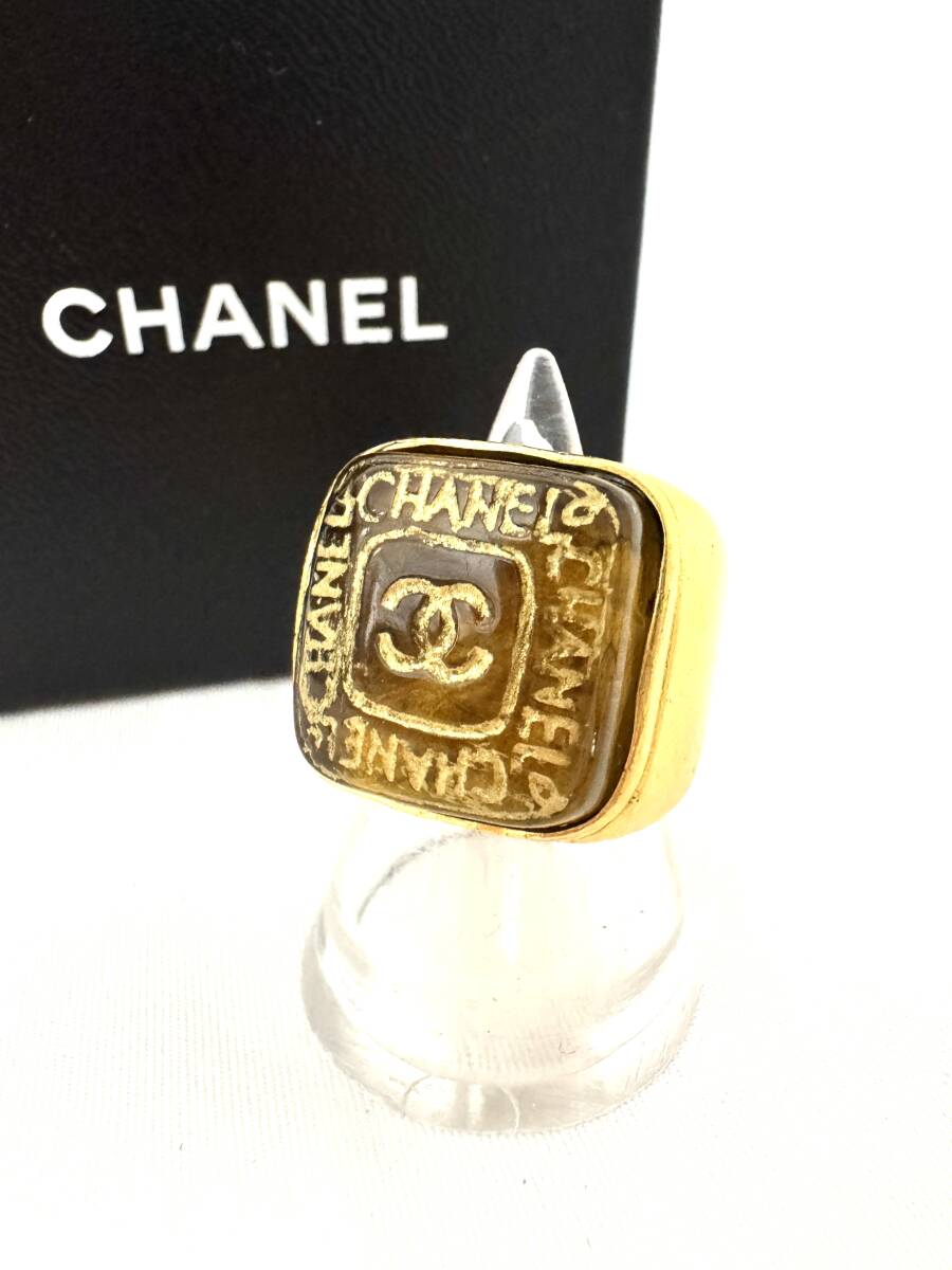 - 7I1415【本物保証】シャネル 指輪 リング べっ甲 カラー ココマーク ロゴ ゴールド CHANEL