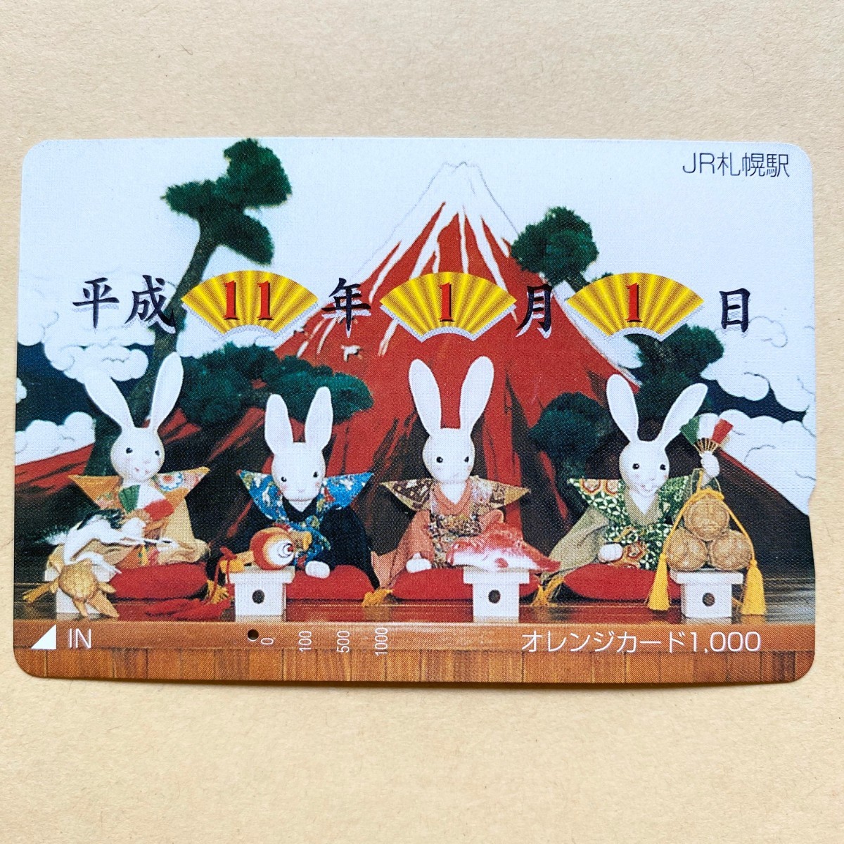 - 【使用済】 オレンジカード JR北海道 ちりめん雛/ウサギ雛 平成11年1月1日