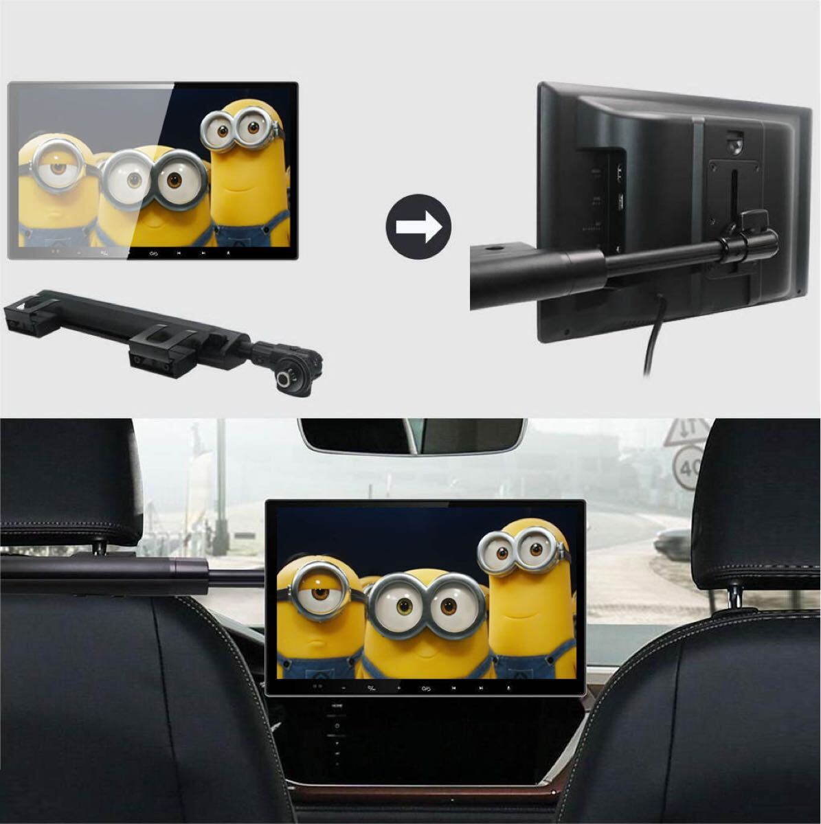 - 伸縮アーム 車載モニター用ブラケット 車載用 モニター スタンド 取付簡単 ヘッドレストモニター リアモニター 後部座席 汎用