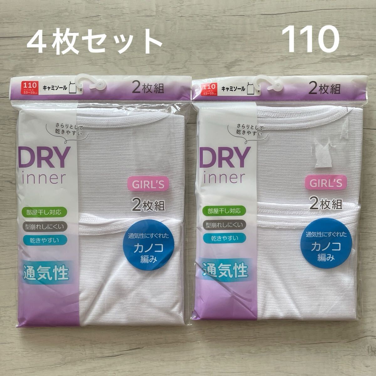 - 【新品未使用】 肌着 シャツ インナー アンダーシャツ 110 キャミソール 4枚セット ドライ 通気性 カノコ編み ガールズ キッズ 女児