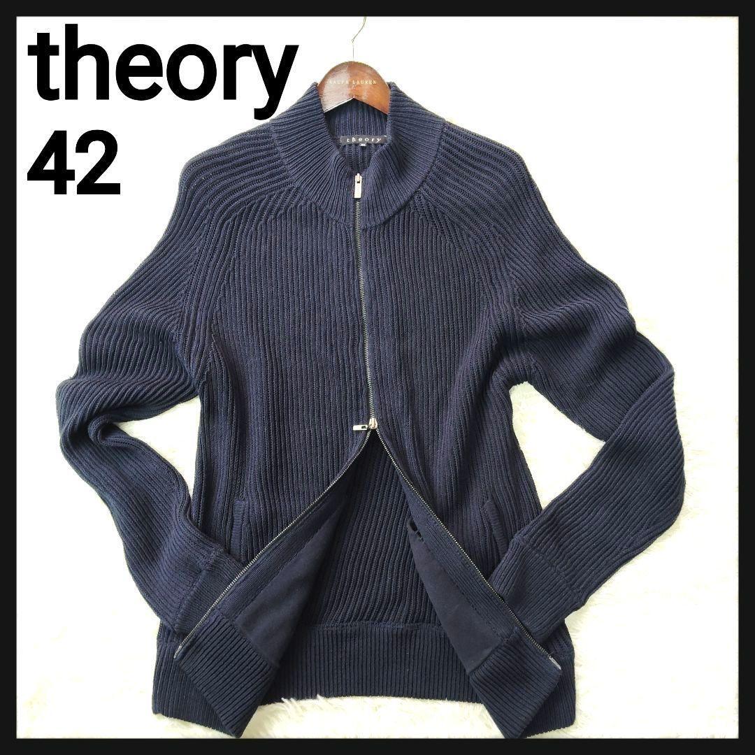 - 【希少サイズ】セオリー畦編みドライバーズニット ダブルジップ 大きいサイズ42 ネイビー