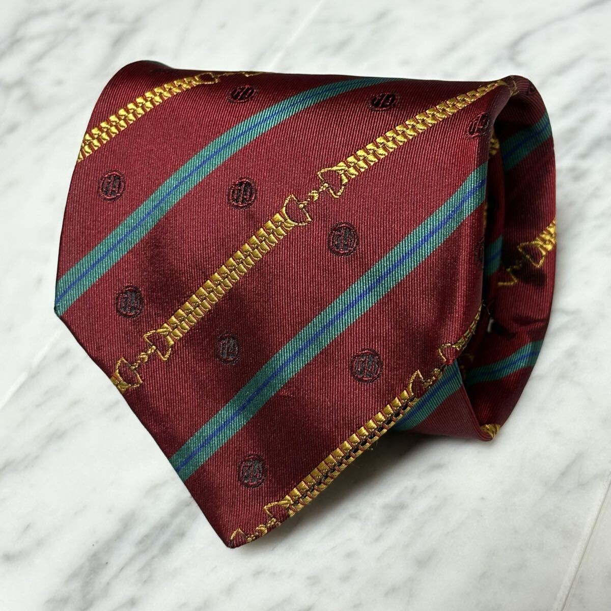 - 500円~ renoma ネクタイ レッド ストライプ 総柄 (R2)