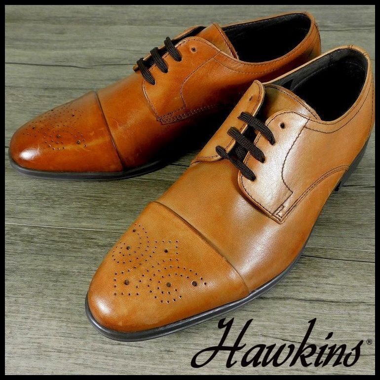 > 未使用 訳有 1円~ ホーキンス HAWKINS メダリオン ストレートチップ 40(25-25.5cm) 茶 牛革 ビジネスシューズ メンズ【4724】