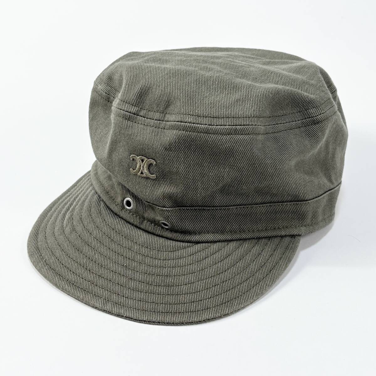 - 美品 CELINE by Hedi Slimane セリーヌ フランス製 トリオンフ アーミーキャップ ギャバジンコットン M(58) カーキ ワークキャップ SSM6215