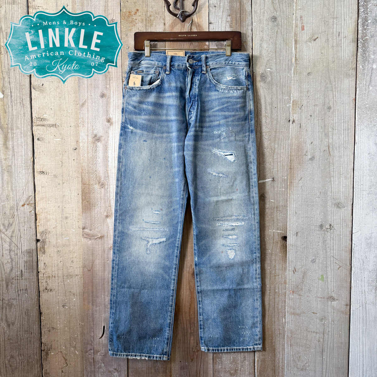- Polo Ralph Lauren(ポロ ラルフローレン)【VINTAGE CLASSIC FIT】ダメージ リペア ジーンズ/32【 メンズ ストレート デニム 】