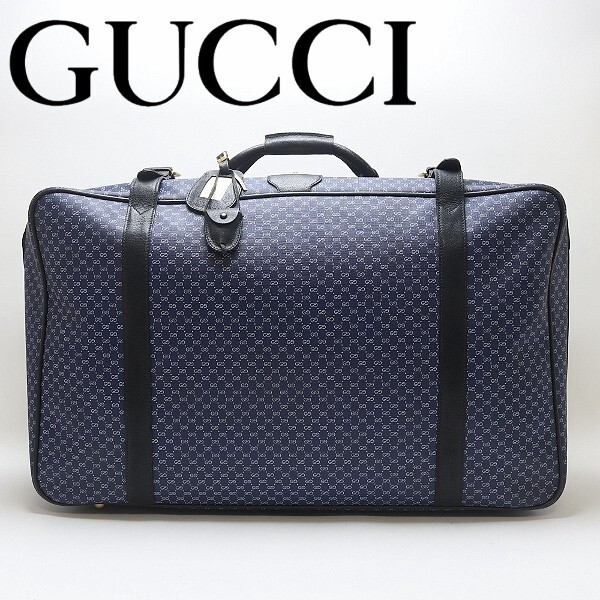 - 【HA337】ヴィンテージ◆GUCCI オールド グッチ PVC×レザー GG柄 トランクケース 旅行鞄 トラベル ハンド バッグ 紺 ネイビー