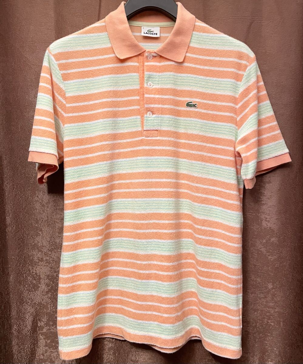 - MADE IN JAPAN製 LACOSTE ボーダー柄 半袖パイルポロシャツ マルチカラー 3サイズ ラコステ 日本製 ポロシャツ オレンジ パイルポロシャツ