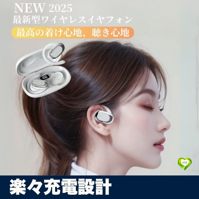 - 【楽々充電設計】耳掛け式 ワイヤレスイヤホン Bluetooth接続 マイク内蔵 オープンイヤー 軽量設計 人気 おすすめ