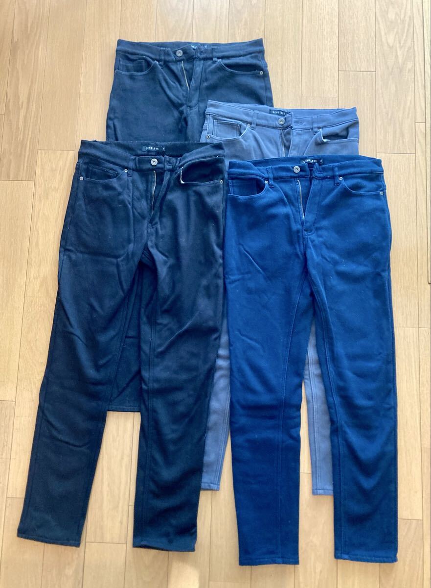 - GENELES ジェネレス メンズ パンツ 裏起毛 ストレッチ M 黒グレー紺4本セット