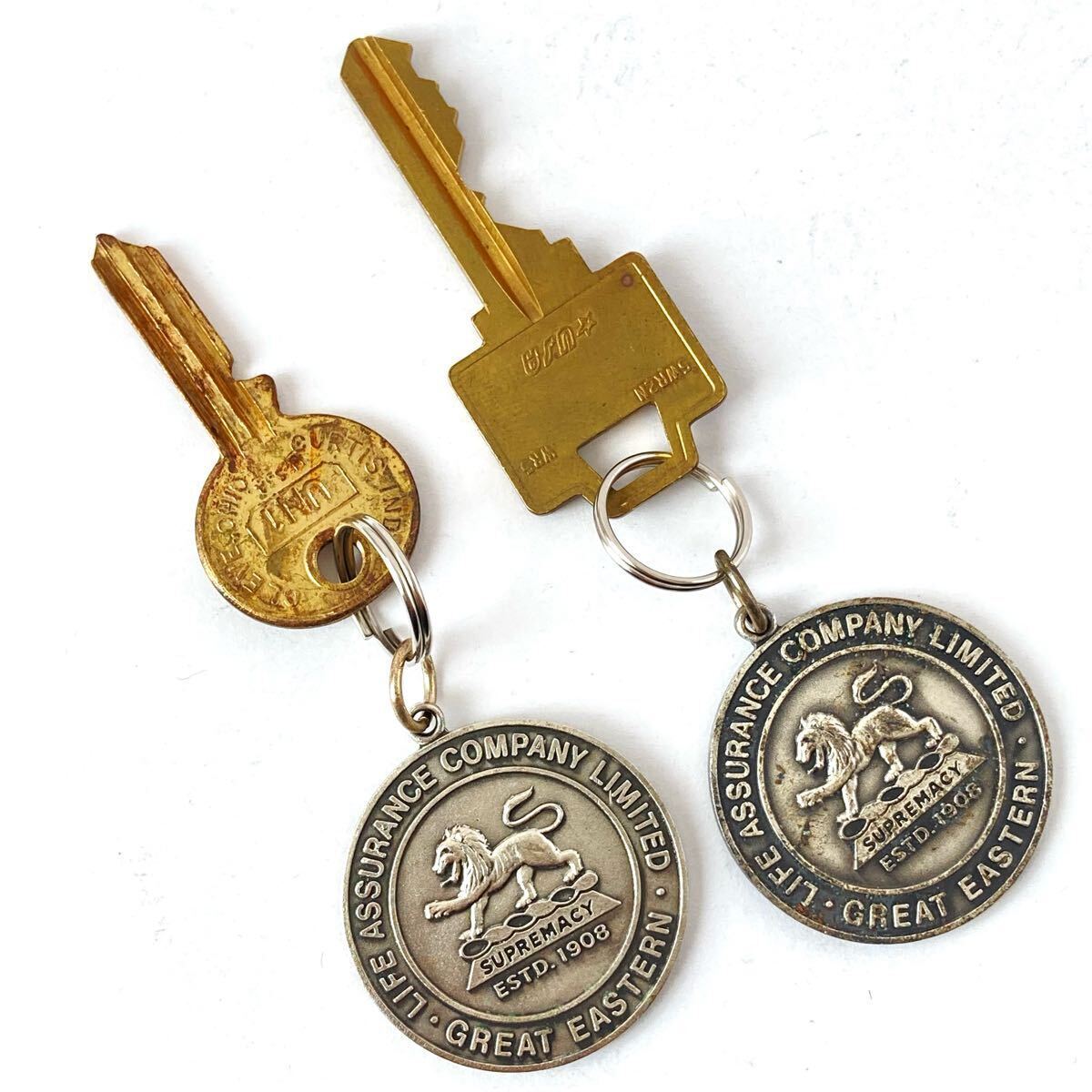 - 104当時物1960年代アメリカ雑貨企業物旧車ヴィンテージ輸出用エンブレムプレート金属製☆キーホルダー真鍮鍵キーセット カギ 鍵ノベルティ