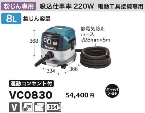 - マキタ 集じん機 VC0830 充電工具接続専用 連動コンセント付 新品