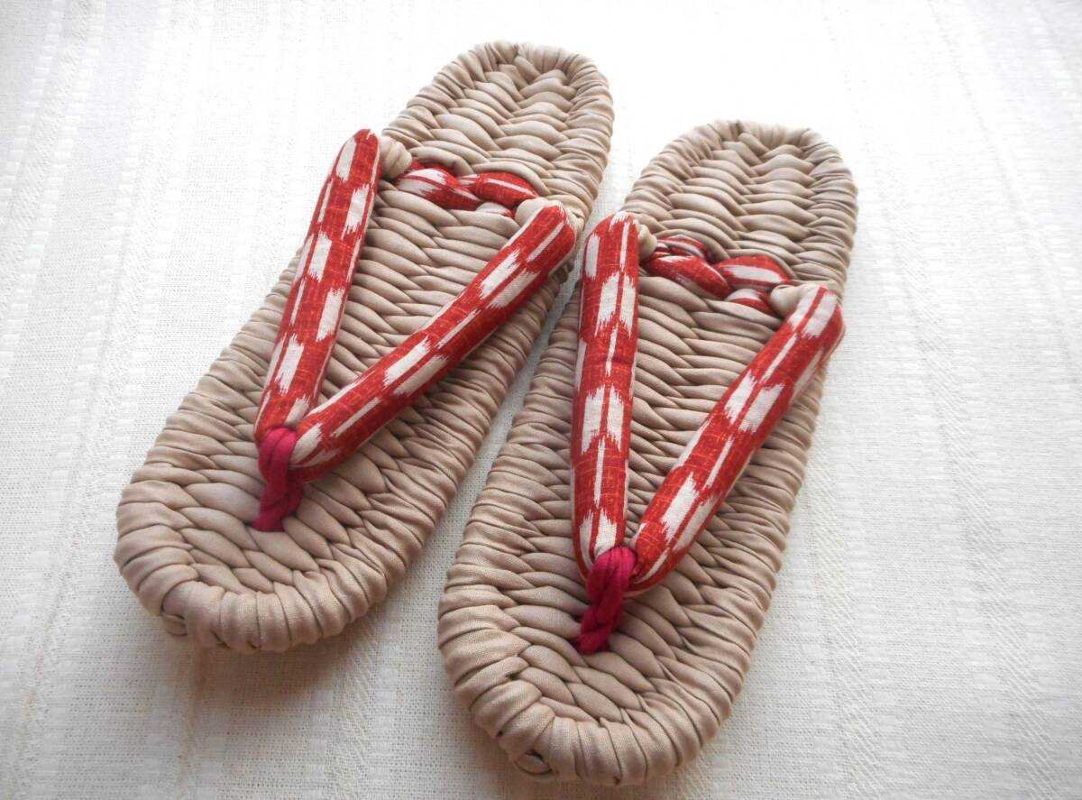 - 24cm◆布ぞうり◆手作り室内履き◆モカベージュ×矢絣
