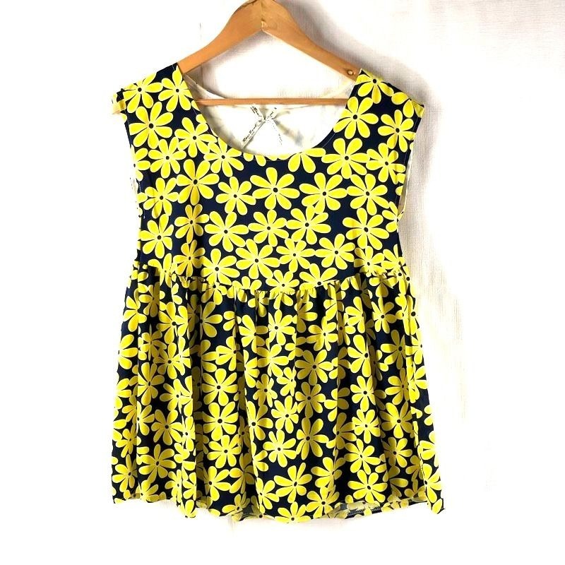 - RoseBowl チュニック 花柄 裏地付き ノースリーブ 黄色 ネイビー 2025082900077