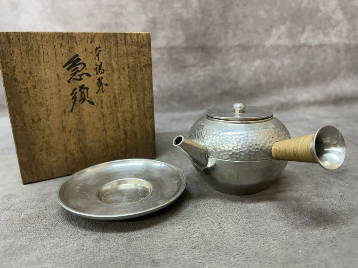- 錫製 金属製 急須 茶托 豊裕 時代物 骨董 コレクション 横手急須 古美術 茶器 煎茶道具