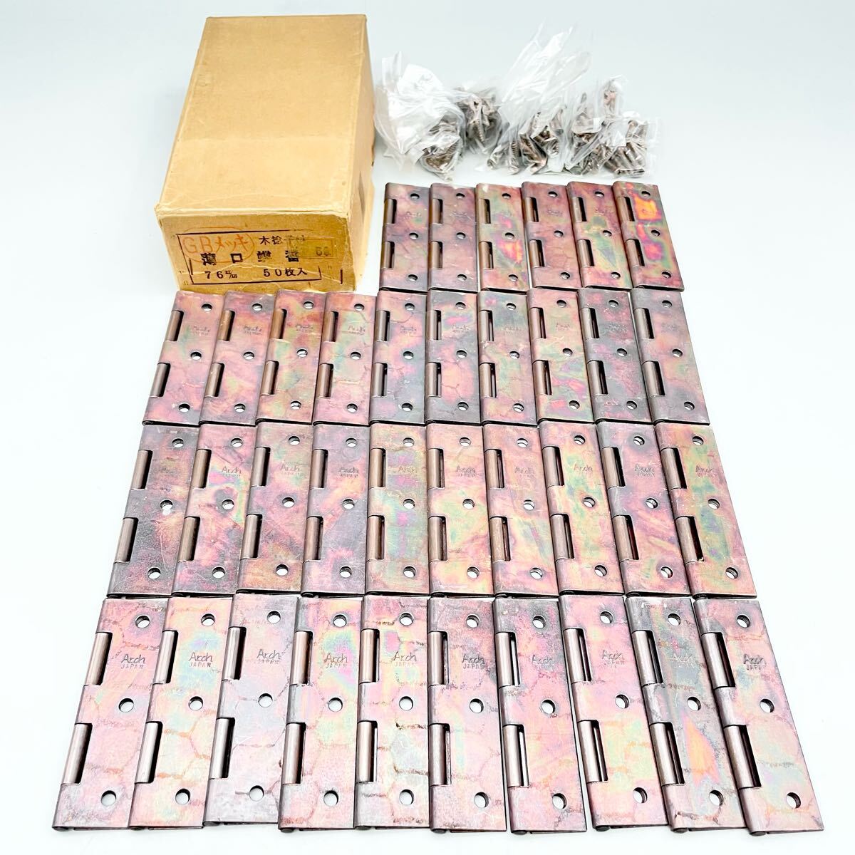 - [新品 未使用品] アーチ印 薄口 蝶番 76mm ブロンズ 36枚 GBメッキ Arch ねじ付 建具 丁番 ヒンジ 棚 扉 ドア 金物屋 在庫品 まとめ売り
