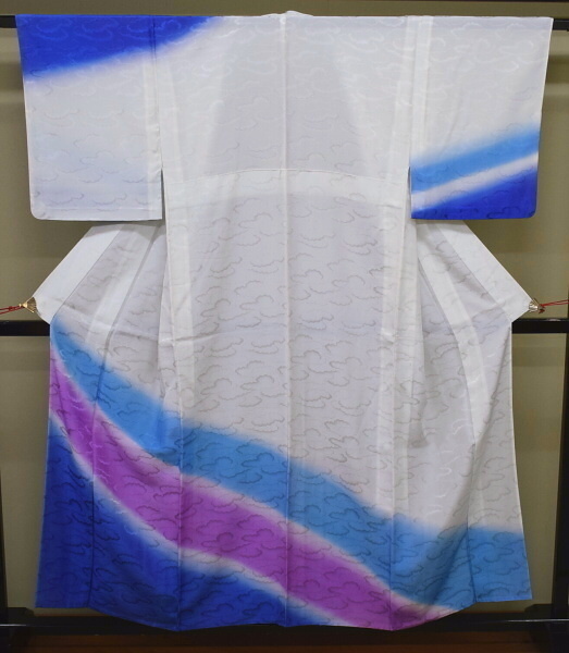 - A12-27【凛々】即決 中古品 ポリエステル 単衣 踊り用 舞台用 着物 白 斜めぼかし