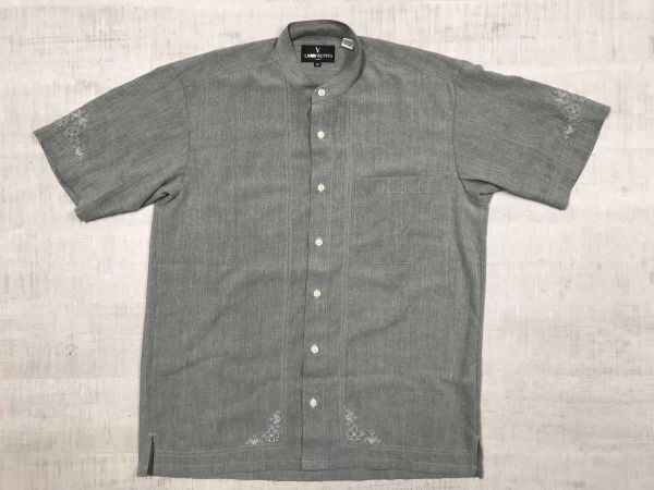 > クラウディオ ヴァレンチノ Claudio Valentino オールド ステッチ 幾何学 クロス 刺繍 半袖バ ンドカラー シャツ メンズ M ライトグレー