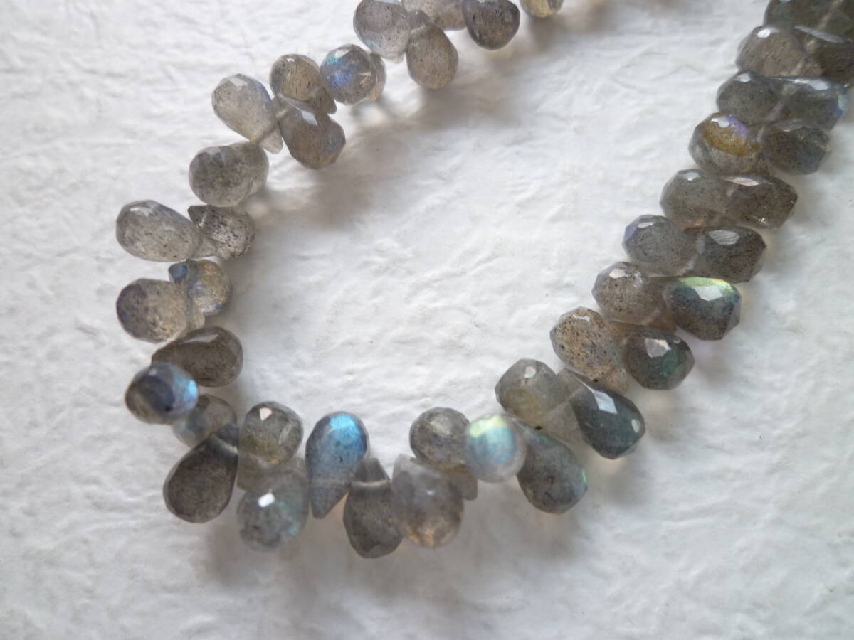 - 100粒1連 ラブラドライト ドロップカット 4×7mm前後 横穴【匿名配送 送料込】