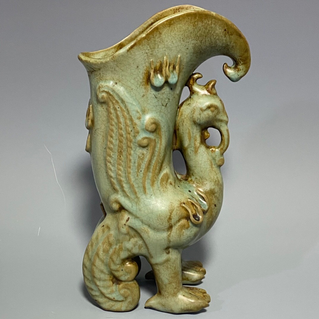 - 【超珍館蔵】宋 古陶瓷品 官窯 汝瓷 鳳角杯 陶藝 古賞物 古董品 古美術品 時代物 旧家蔵出 稀少珍蔵品