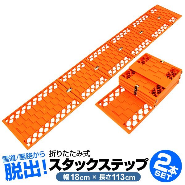 - タイヤチェーン スタックステップ スノーヘルパー 折りたたみ式 ロングサイズ チェーン タイヤ スタック 雪 脱出 泥 砂 2本セット