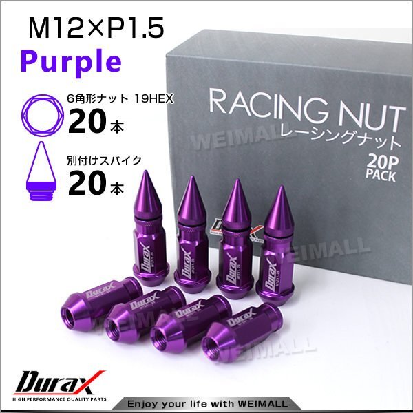 > Durax正規品 アルミ製 ホイールナット P1.5 スパイクナット 紫 20個 アルミ ホイール ナット レーシングナット