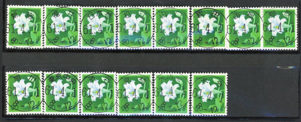 - A30a 満月印 普通切手 花 20円「ゆり」使用済