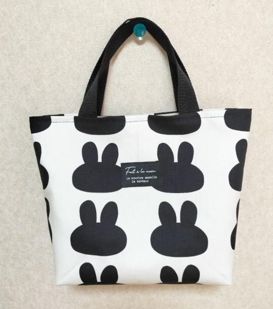 - トートバッグうさぎ柄 ハンドメイド サブバッグ エコバック ランチバッグ