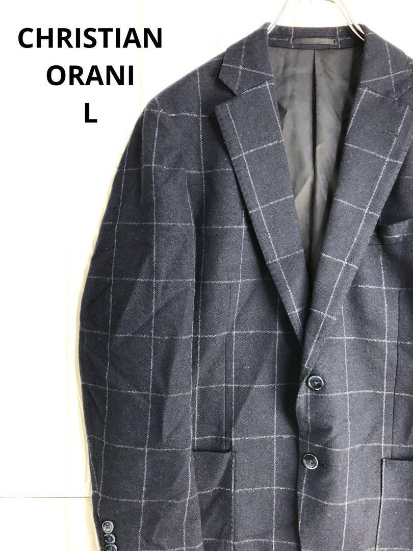 - CHRISTIAN ORANI ネイビー チェック柄 テーラードジャケット L
