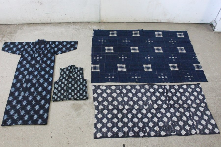 > TB526木綿製 古布 絣 着物◇藍染/袷/羽織/野良着/襤褸/リメイク素材/材料/手芸/和布/古裂/綿布/時代/当時物/レトロ/古道具タグボート