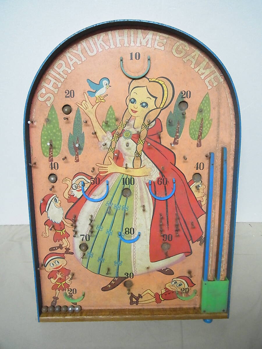- 木製盤 パチンコ☆昭和レトロ 白雪姫?玩具 ピンボール おもちゃ 古道具 アンティーク スマートボール系